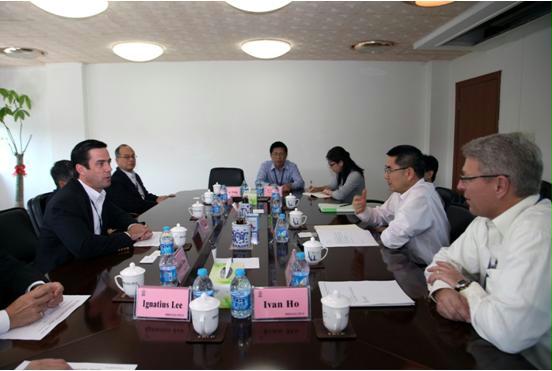 Mr. Russ Green, ExxonMobil Vice President of Refining Sales, visited FREP on the morning of November 5, as accompanied by Mr. Neo Kim Teck, ExxonMobil Asia Pacific Sale Director, Mr. Dominic Tang and Mr. Lgnatius Lee, SSPC (Fujian) Vice Presidents. FREP Chairman and President Mr. Gu Yuefeng had a cordial meeting with the delegation led by Mr. Russ Green where the host and guests had cordial and friendly talks.