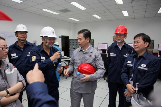 The group visited EO/EG central control room as the first stop. Mr. Lu shook hands with the on-job front-line employees and expressed congratulations to the one-time successful start-up.