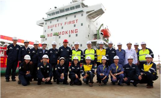 On the afternoon of May 28, FREP and China National Aviation Fuel (CNAF) company jointly held ceremony for maiden trip of Haixin oil 618# oil ship and load 15000 tons of jet fuel to Pudong Airport. Mr. Nouraddin A. Yousuf, Vice President of FREP, and Mr. Huang Qingding, Deputy GM of CNAF logistics company attended and addressed the ceremony.