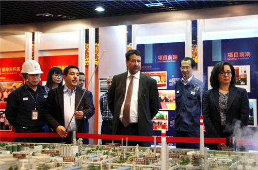 吴海璧先生一行在苏比翼副总裁陪同下,兴致勃勃地参观了一体化项目展览厅、新厂区中央控制室,并驱车察看了生产装置现场,详细了解公司生产装置工艺流程、安全环保等情况。