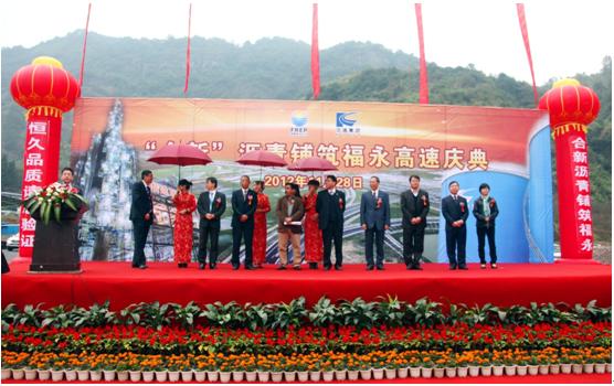 11月28日,公司举行“合新”牌沥青产品铺筑福永高速公路庆典仪式在福州至永泰高速公路方广岩隧道口隆重举行。公司副总裁苏比翼,福建交通集团公司董事长刘小健等领导出席仪式。