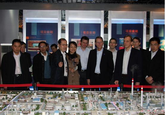 扬巴公司代表团在陆东总裁和相关部门领导的陪同下,兴致勃勃地参观了公司展示厅和新厂区中央控制室,并乘车察看了生产装置现场。
