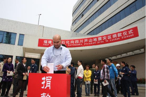 福建联合石化中外方员工踊跃向四川芦山地震灾区捐款