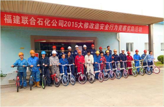 By report, since Dec. 12, the Company rewarded excellent performers in safety during TAR/Revamp on Dec. 19 and Dec. 26 and generated 2 first prizes, each winning a bicycle valued at around 2,500 RMB; 5 second prizes, each winning a bicycle valued at around 1,000 RMB; 10 third prizes, each winning a bicycle valued at around 500 RMB. Meanwhile, 50 encouragement prizes were generated with gifts presented. (Lin Yanzhong)