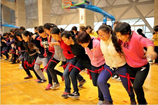 “One, two, one two…” with the referee’s whistle going off, players shouted slogans in chorus when putting their hands on each other’s shoulders, went all out to align the movement of their waists and legs and dashed towards the finishing line in concert. The competitions between teams, the teamwork between team members or the faults they committed all lighted up the faces of female spectators, the “rolling wheels” event in particular, where players each should step on a narrow piece of cloth in an extremely careful manner with their hand in hand; because without good teamwork and balance, the team will stagger east and west and the tempo of the team as a whole will be affected. The scene of games was full of joy, with some cheering for the players, some stamping feet, and others jumping. It was teeming with happy laughter and cheerful voices. Female employees celebrated their special day in delight.