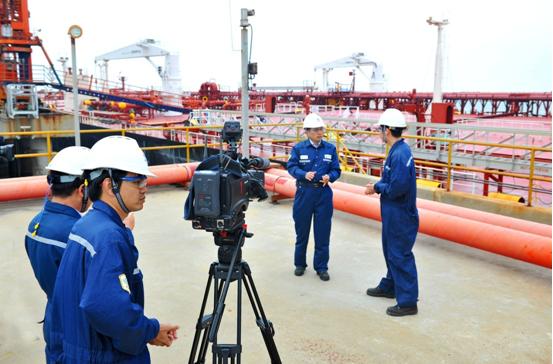 Kang Qingshan, the offsites general manager of Process Department, and Wu Zhong, the deputy general manager of Technical & Planning Department received the provincial TV reporter’s live interview respectively at the new plant central control room and QLS oil terminal.