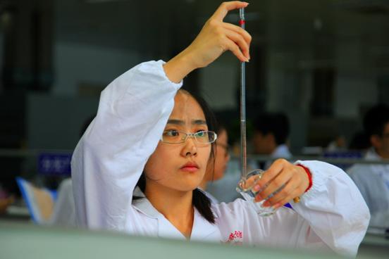 Laboratory technicians play a key role in chemical industry production and thus are crucial to ensure the safe operation of the plant and guarantee the quality of petrochemical products. The finalists are all outstanding laboratory technicians from all enterprises. In order to be close to the production, stress on practical results, build the high-qualities, and enhance the level, we set up two parts for the competition: theoretical knowledge and skill operation. The part of theoretical knowledge is to examine basic theoretical knowledge of chemical laboratory analysis, while that of skill operation is to test weighing and titration analysis and spectrophotometric analysis.