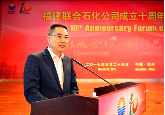 Mr. Xu Jianping, General Manager of Fujian Petrochemical Group, also recalled the hardship and his unforgettable experience in the joint venture project preparation, negotiation, construction and operation. He said, FREP is a large scale Sino-foreign joint venture deepening China-America and China-Saudi Arabia economic and trade cooperation in petrochemical industry that jointly invested by four parties respectively from three countries including China, America and Saudi Arabia. Currently, China economy development has entered into a New Normal state where opportunities and challenges co-exist. He hoped that, FREP can continue to put the advantages in technology, management, market and resources into full play, take the 10th anniversary as a new start, to build FREP to be a leading enterprise with international advanced performance of the hundreds of billions petrochemical industrial cluster, realize harmonious development of economical and ecological environment, and make new contributions to step to a new height and build a new Fujian.