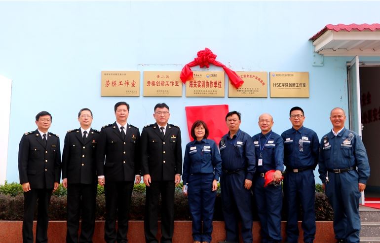 For strengthening the cooperation between the customs and the company and jointly developing safety culture, on the morning of November 19, the company's Huang Xiaobin Model Worker Safety Innovation Studio and Liu Lixiong Studio of Quangang Office of Quanzhou Customs established a joint building relationship, signed the co-building agreement and unveiled the plaque. Shen Qinghui, deputy director of Quanzhou Customs, and Neo Ee Ee, vice president of the company attended the ceremony.