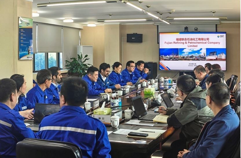 On January 13, Company leaders Lin Xu and Haytham Zamzami met with Chen Yanmin, President of SABIC FUJIAN Petrochemicals Co., Ltd., and his delegation during their visit. The two sides exchanged views on topics such as high-quality enterprise development and industrial synergy and cooperation.
