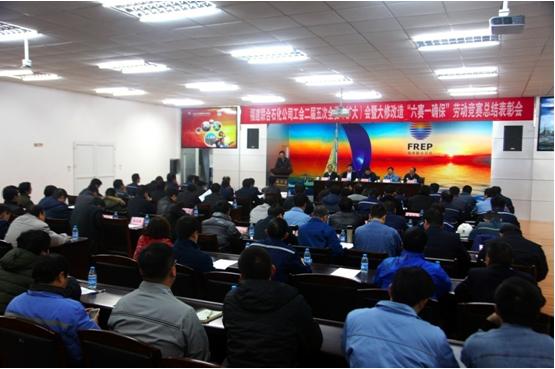 122日下午,公司工会在展览厅召开2015年老厂大修改造六赛一确保劳动竞赛总结表彰会。公司领导顾越峰、陈晓波、尤思福、杨洪斌、刘彦昌出席会议,竞赛指导委员会组长、副组长及各职能组组长、副组长,公司各参战单位经理、PCLTCL及工会主席,受表彰单位代表及个人参加了会议。会议由工会主席杨洪斌主持。