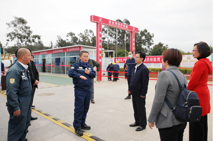 在张肇宏劳模安全创新工作室职工技能实训基地,贾海涛一行参观了仪表、电气、钳工、静设备等专业区域,听取相关专业人员的汇报,了解实训基地从立项、组织筹建、设施完善到成立的过程以及今后的发展规划,并详细询问了设备用途、课程设置、师资组成等方面的情况。当得知实训基地近年完成两万多人次培训任务时,他连声叫好,对实训基地取得的成绩表示肯定,他说:“职工技能实训基地敢于创新创造,为企业培养了高素质人才,为地方经济发展贡献了劳模力量。”